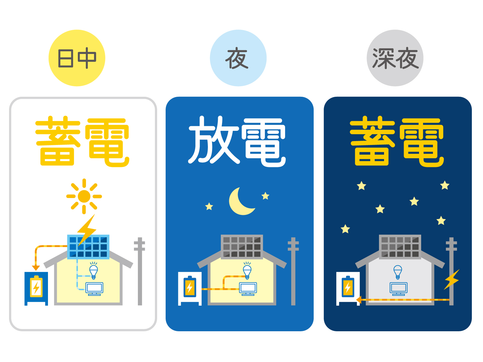 電気代が安い深夜のうちに蓄電池に充電して、電気代の高い時間帯に活用!